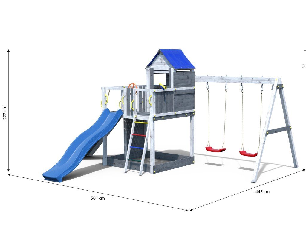 | Materiál: | drevo, UV stabilné plastové časti, oceľ, lano |