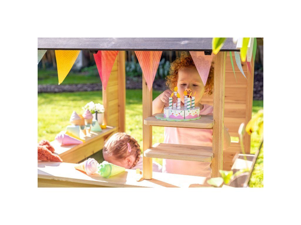 Je tu dostatok miesta na hranie, zdieľanie a zábavu s viacerými deťmi, tak prečo nepozvať deti od susedov a zahrať sa na reštauráciu alebo na doktora v tomto nádhernom drevenom domčeku Hika!