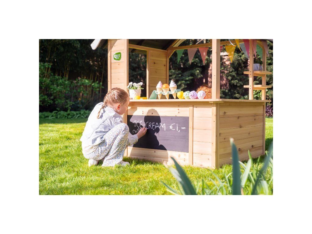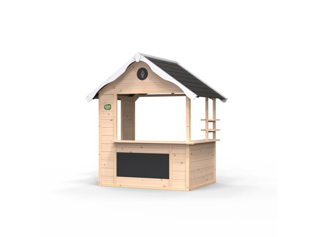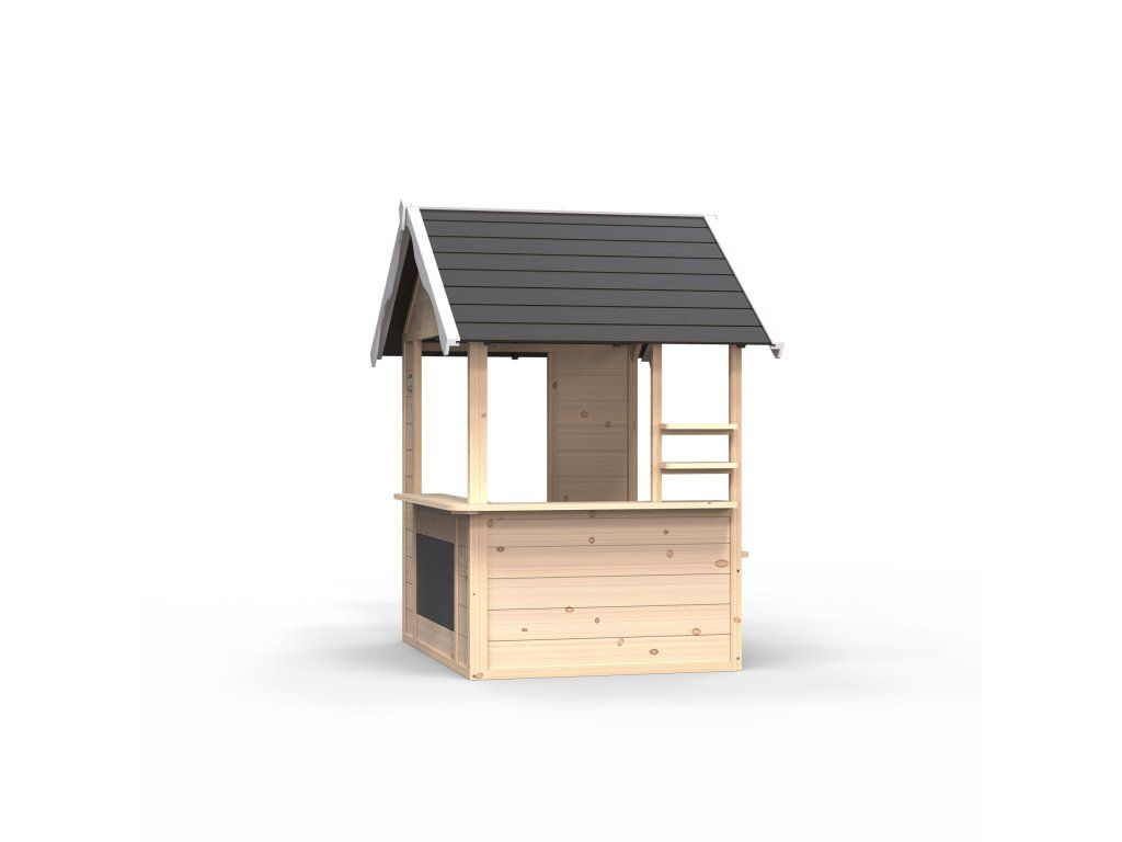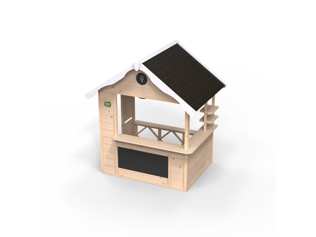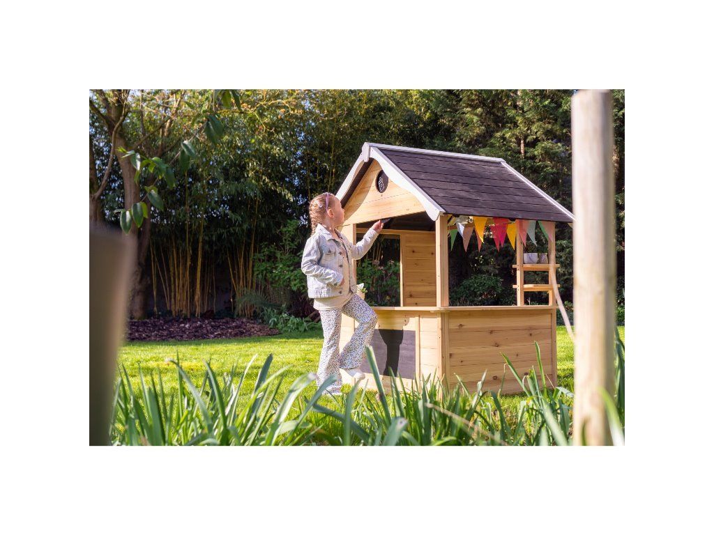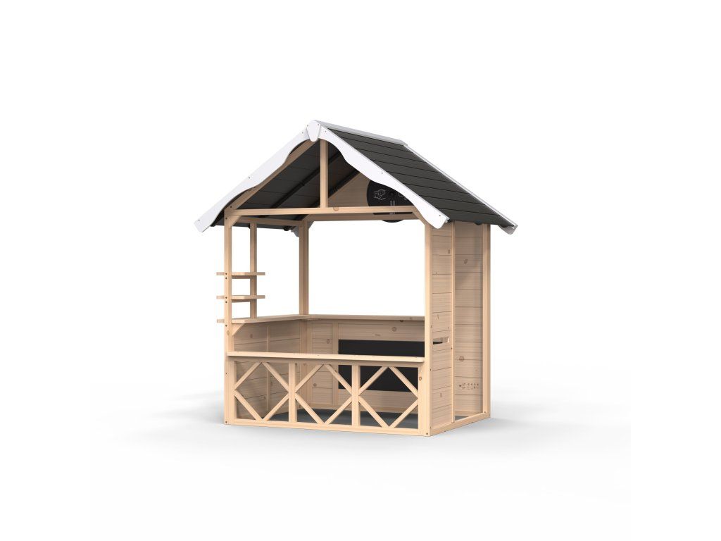 Domček Hika má atraktívny a nadčasový dizajn, a preto sa hodí do každej záhrady. Detaily ako pult, oplotenie, tabuľa a hravá strecha s tématickým kolieskom robia drevený domček EXIT Hika jednoducho úžasným!