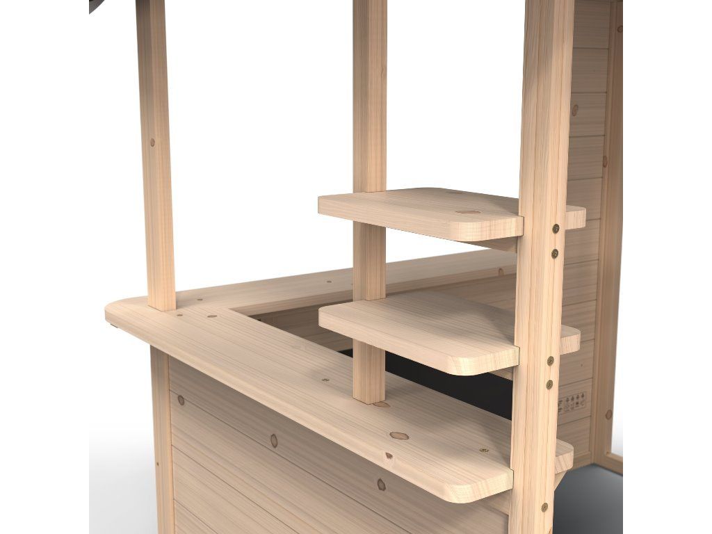 Drevený vonkajší domček na hranie je vyrobený z vysoko kvalitného cédrového dreva s certifikátom FSC® (FSC 100%, SCS-COC-007799). Tento druh dreva je prirodzene odolný voči poveternostným vplyvom, ako je dážď, slnko a sneh. Hniloba dreva nemá šancu, čo znamená jeho dlhšiu životnosť a tým aj dlhšiu zábavu z hrania!