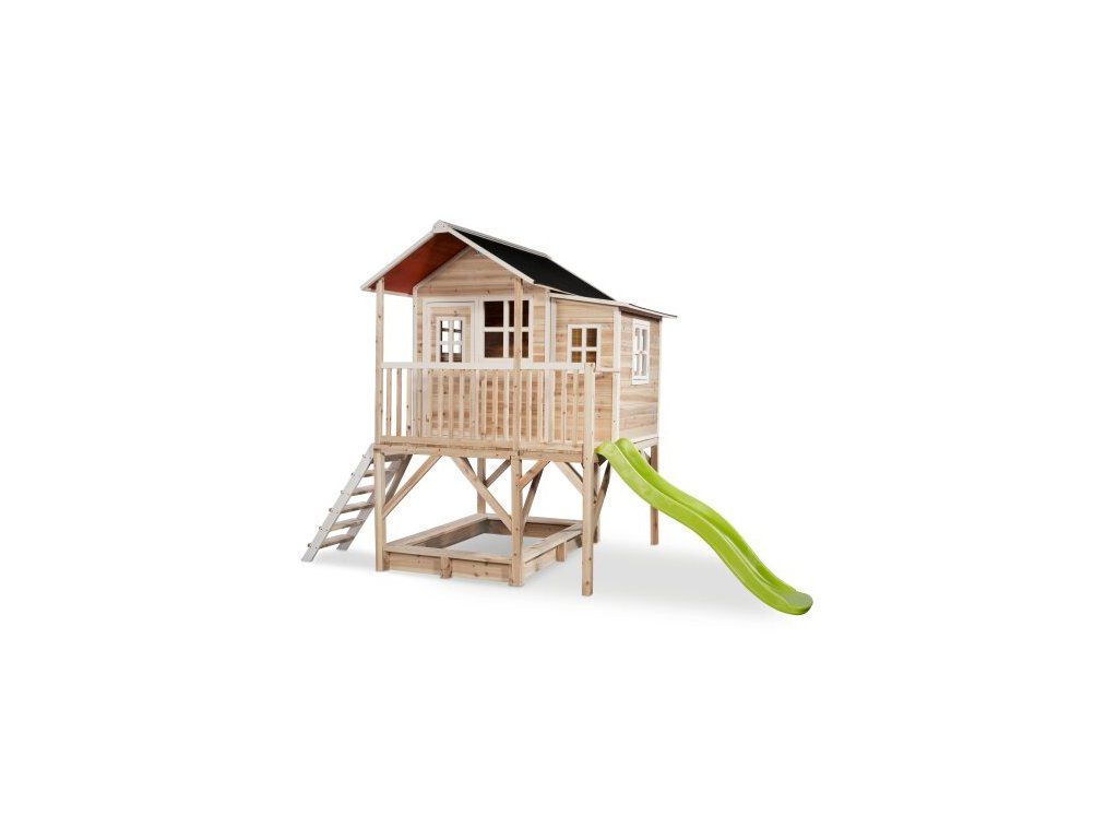 Svojim veľkorysým prevedením vďaka vyvýšenej podeste a rozšírenému priestoru, šmýkačke i pieskovisku má domček Loft 550 všetko, čo deťom samotnú hru maximálne zatraktívni.