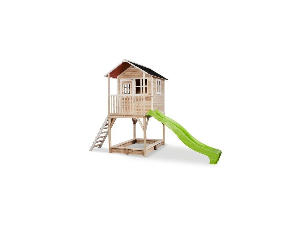 Svojim veľkorysým prevedením vďaka vyvýšenej podeste, dlhej šmýkačke ako i pieskovisku má domček Loft 700 skutočne všetko, čo deťom samotnú hru ešte viac zatraktívni.