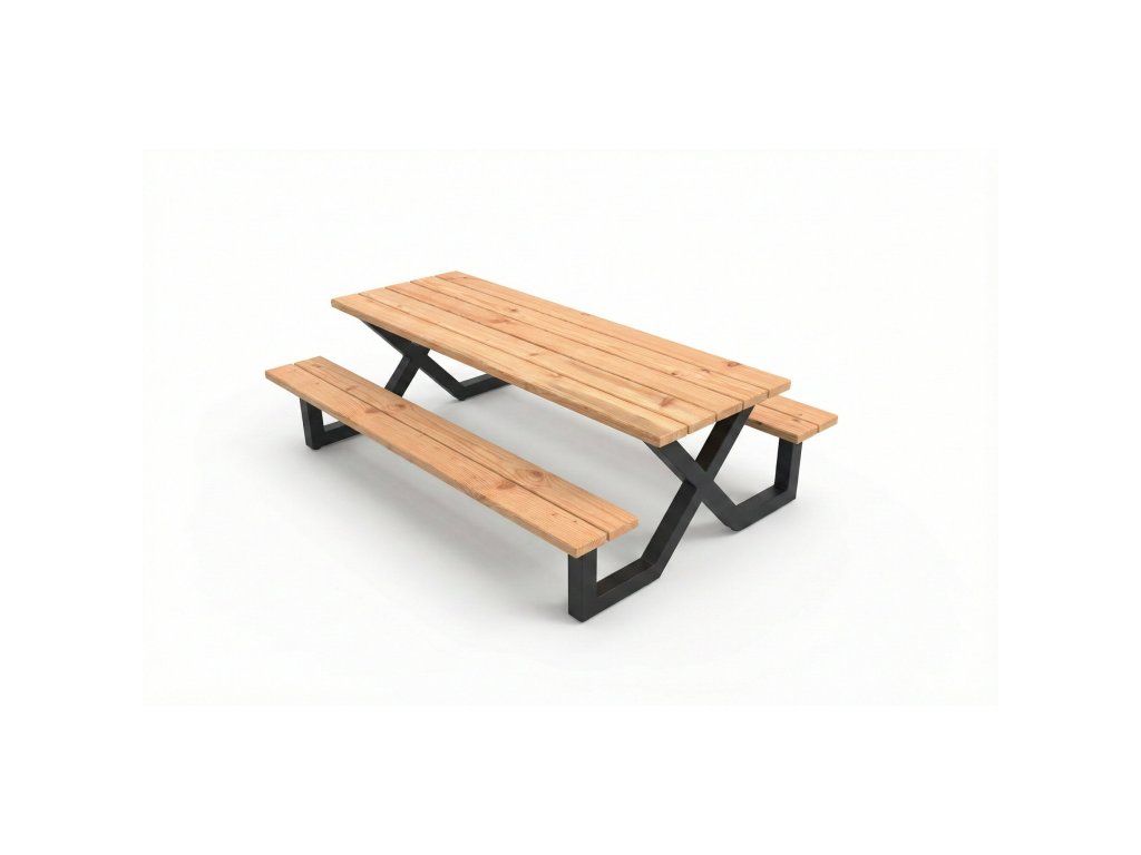 Prémiový piknikový stôl z douglasky s oceľovým rámom
