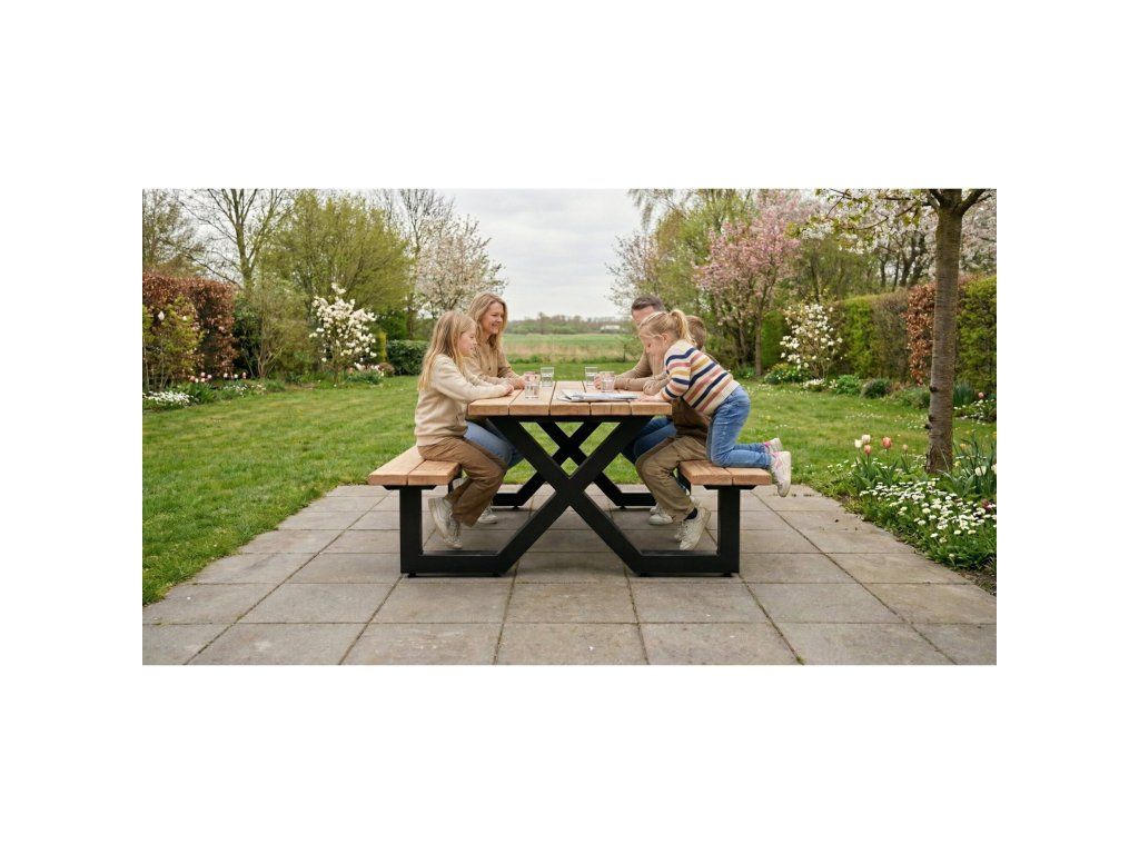 Piknikový stôl EXIT X-200 kombinuje stabilitu, pohodlie a štýl v exteriérovom stole určenom na intenzívne používanie. Nadčasový dizajn premení váš vonkajší priestor na oázu útulnosti a pohodlia. Na jedenie, hranie, rozhovory a relax po celý rok.