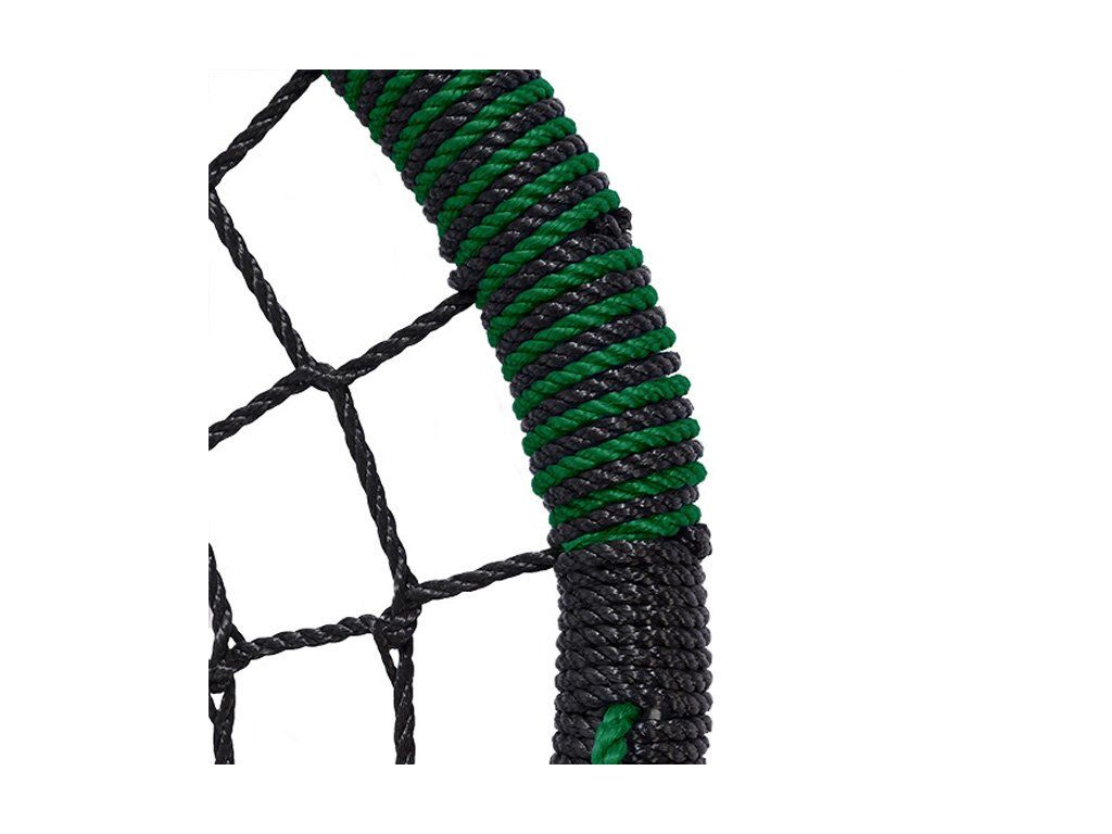 Kovový rám hojdačky je prekrytý navinutým lanom pre ešte väčšiu bezpečnosť.