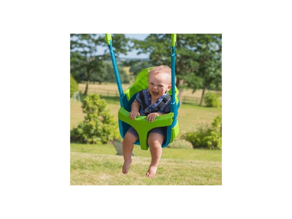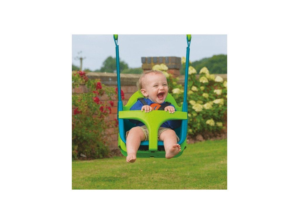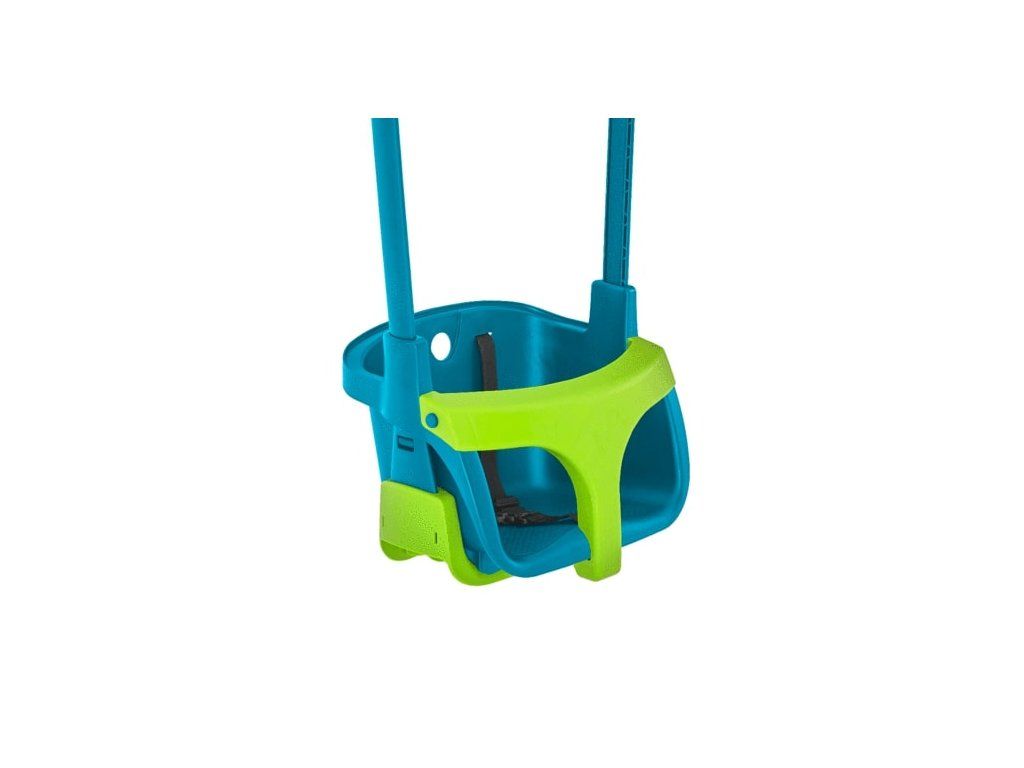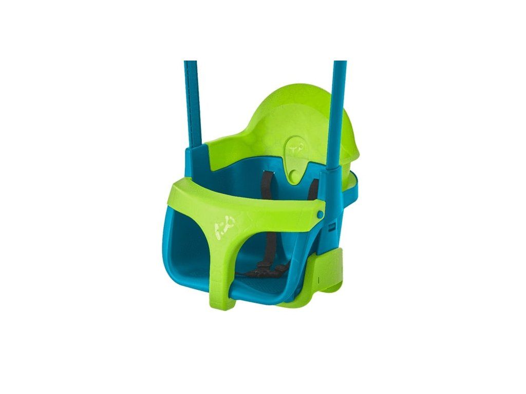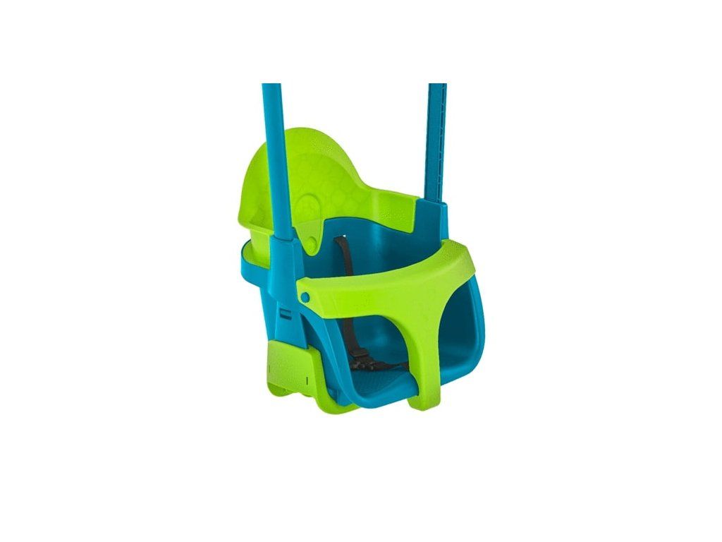 Plné sedadlo s vysokým operadlom a bezpečnostnými popruhmi vhodné pre deti od 6 mesiacov. Zábradlíčko v tvare Y uľahčuje vkladanie a vyberanie dieťaťa do/zo sedadla. 5-bodové popruhy maximálne zvýšia bezpečnosť vášho dieťatka pri hojdaní