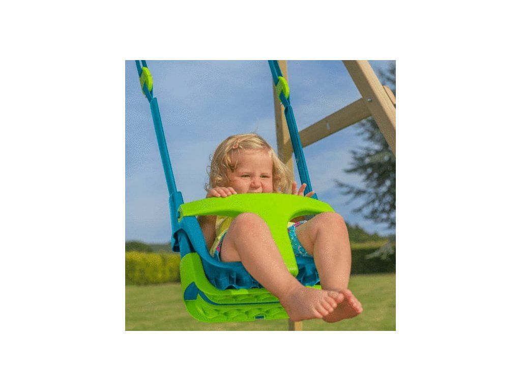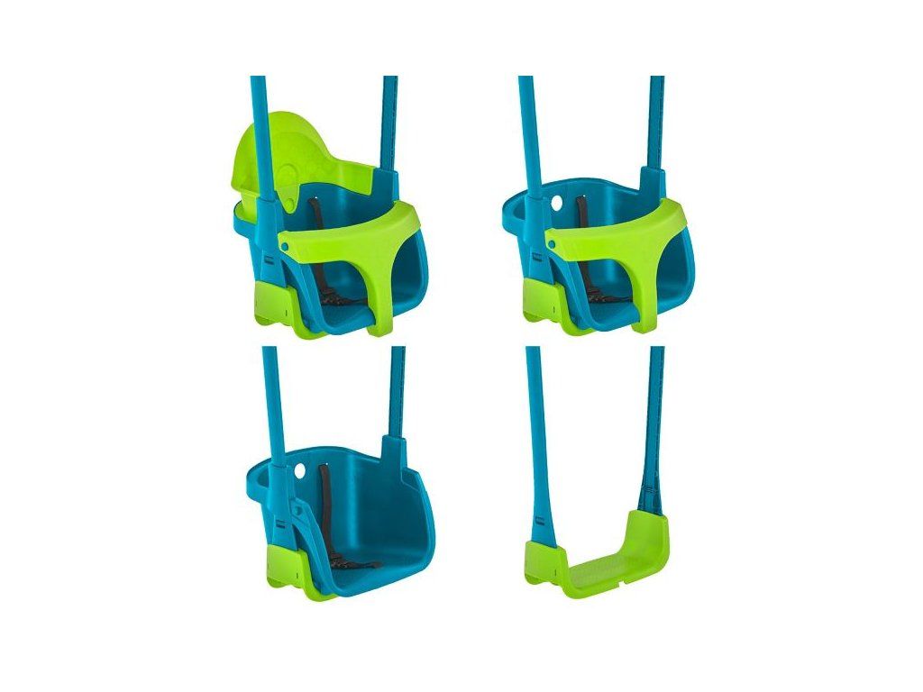Jednoduchým odobratím zvýšeného operadla hojdačky získate novú hojdačku pre deti okolo 2 rokov veku.