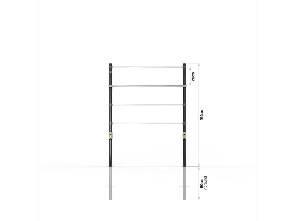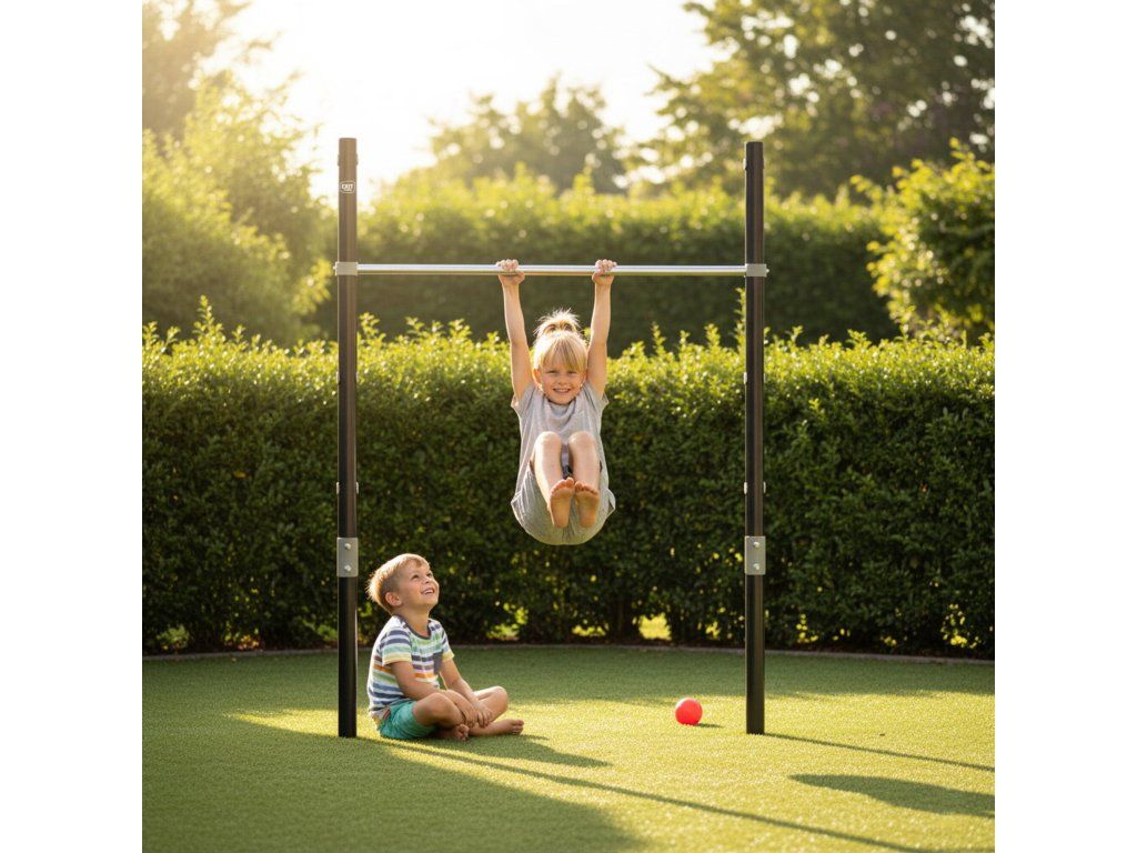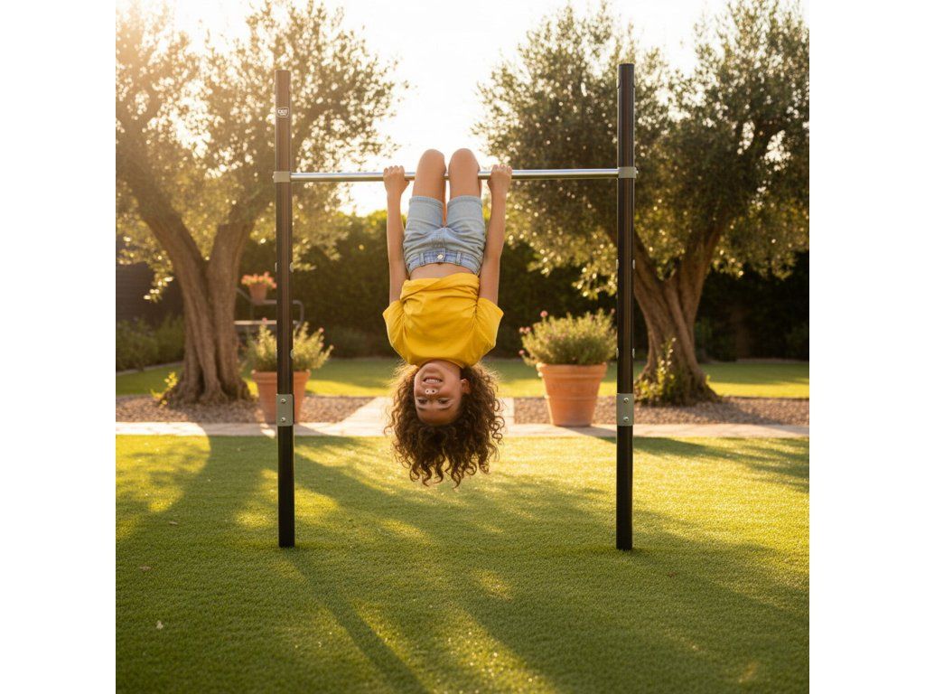 Gymnastická hrazda EXIT Ivy je ideálnym miestom pre vaše dieťa na precvičovanie salt, piruet, hojdania a visenia v záhrade. Vďaka nastaviteľným výškam táto gymnastická hrazda rastie s vaším dieťaťom. Od prvého salta dopredu alebo dozadu až po skvelé akrobatické kúsky prináša gymnastická hrazda zábavu a cvičenie do vašej záhrady. A vďaka svojej kompaktnej veľkosti sa zmestí kamkoľvek!