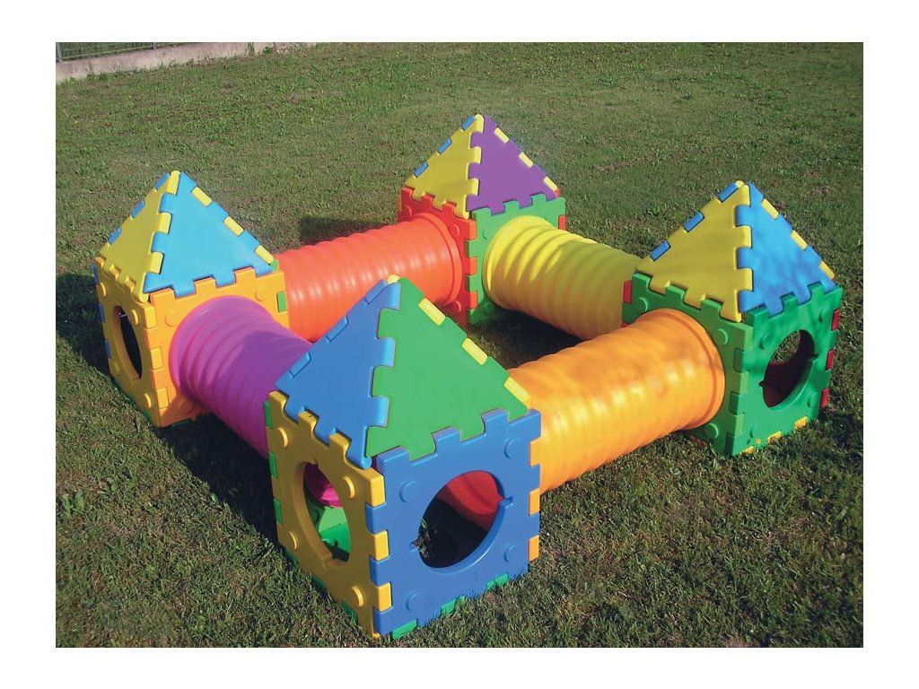 Cubic Toy je systém pevných, stabilných a UV stálych pestrofarebných domčekov, skrýš, šmýkačiek, tunelov a schodíkov.