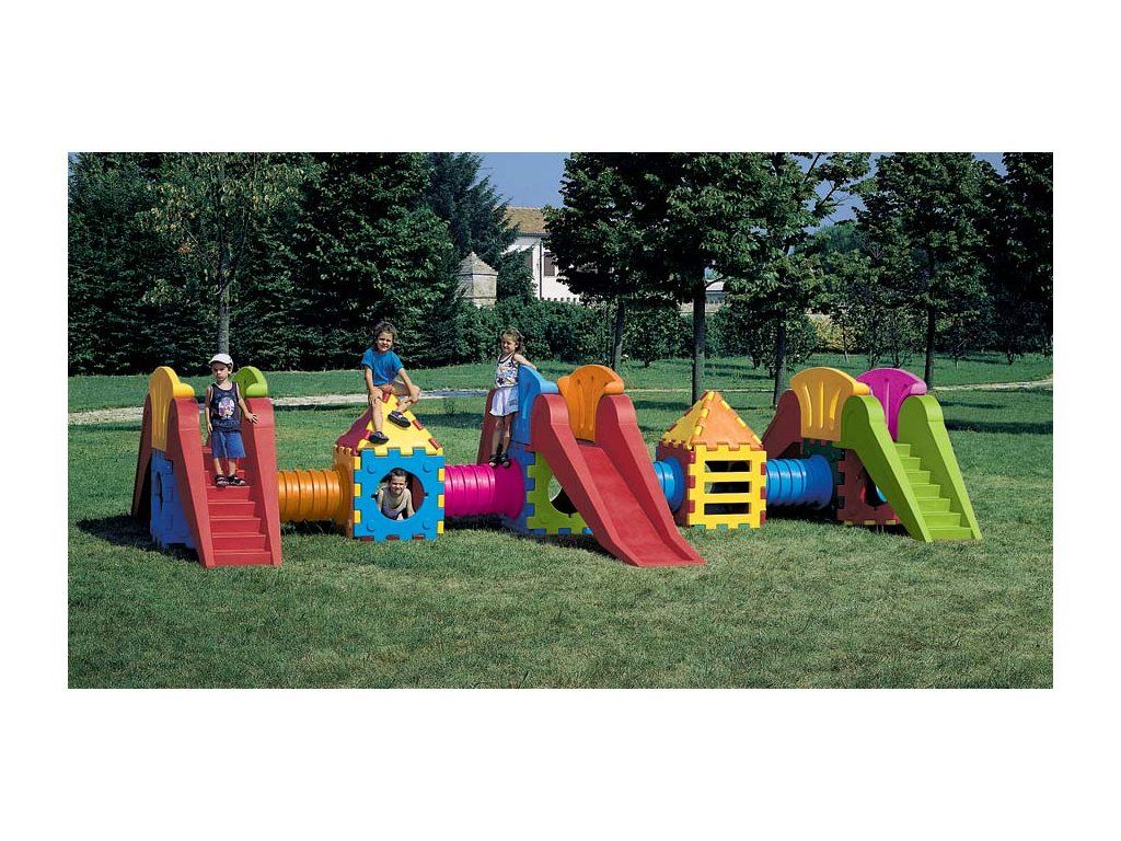 Cubic Toy je systém pevných, stabilných a UV stálych pestrofarebných domčekov, skrýš, šmýkačiek, tunelov a schodíkov.