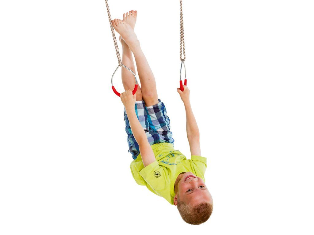 - Kruhy ako i kovové úchyty hrazdy a sedáku sú vyrobené z pozinkovanej ocele.