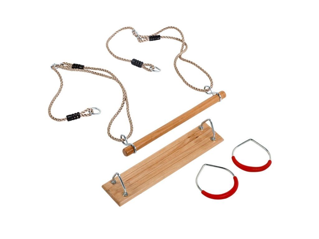 Ide o viacúčelovú sadu obsahujúcu hojdačkové sedadlo, hrazdu a gymnastické kruhy.
