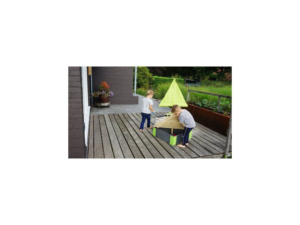 Toto drevené pieskovisko sa ľahko montuje a je mimoriadne odolné. Predvŕtané otvory sú v rohoch zaistené kovovými spojkami, vďaka ktorým je pieskovisko veľmi stabilné. Tieto kovové rohové spojky sú natreté sviežou limetkovou farbou, čo v kombinácii so sivým drevom dodáva pieskovisku pekný a moderný vzhľad.